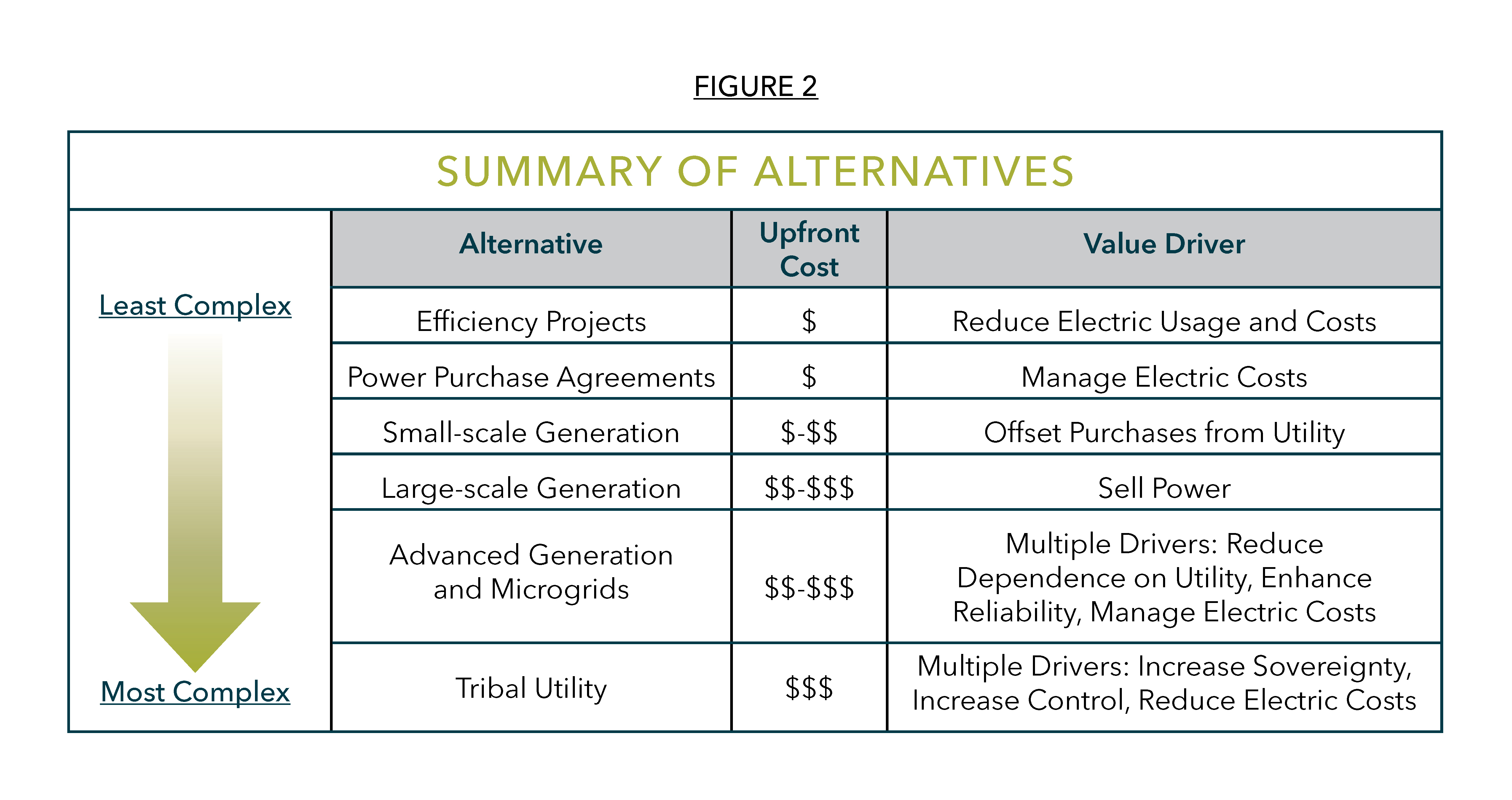 With the Tribe’s success criteria defined, the Tribe can evaluate alternatives and assess how well the alternatives align with the Tribe’s long-term vision. Some examples of energy alternatives to consider are listed below in Figure 2: